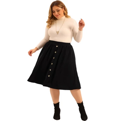 Fashionable Design: This corduroy midi skirt features a button-front decor design, elastic high waist, and pockets, creating a fashionable look perfect for casual or formal occasions. Plus-Size Fit: Designed with a comfortable and flattering plus-size fit, this skirt is suitable for women of all sizes who want to look and feel great. Versatile Use: The classic A-line design of this skirt makes it easy to pair with different outfits, from blouses and t-shirts to sweaters or jackets, making it a versatile addition to your wardrobe. Quality Material: Made from corduroy material, 80% Polyester, and 20% Nylon, this midi skirt is soft, durable, and comfortable against the skin, ensuring long-lasting wear. Convenient Pockets: With its convenient pockets, this skirt allows you to keep your essentials close at hand without having to carry a bag, adding to its functional appeal.