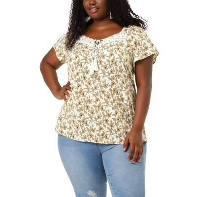 The Plus Size Blouse for Women is a stylish and versatile piece that is perfect for both work and casual occasions. The tassel self-tie neck adds a touch of elegance, while the hollow round neck and floral print create a vintage and chic look. This blouse can be paired with shorts, jeans, or a skirt, offering endless possibilities for creating different outfits. This blouse is perfect for various occasions, including work, parties, or casual outings. Pair it with a pair of wedges for a more formal look or dress it down with sandals for a casual and beachy vibe.