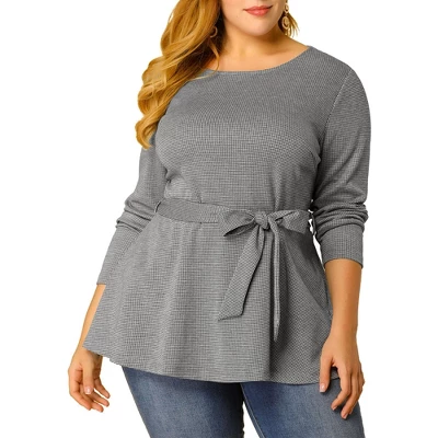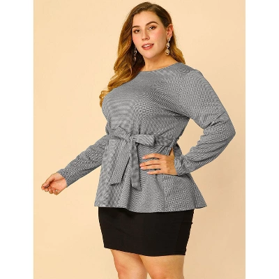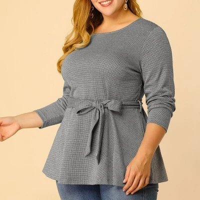 Elevate your fall/winter formal outfits with these stylish plus size houndstooth peplum blouses. Designed to exude sophistication and elegance, these blouses will make you feel confident and stylish at any formal occasion. These versatile blouses can be worn to formal events, as office wear, or whenever you want to make a fashionable statement. The classic houndstooth pattern adds a timeless and polished look to these blouses. The flattering peplum design of these blouses accentuates your curves and creates a beautiful silhouette. Enhance your natural body contours and feel confident in these figure-flattering tops. The tie waist detail adds an extra element of chicness to these blouses. It not only enhances the overall aesthetic but also allows for a customizable fit, ensuring comfort while maintaining a stylish appearance.