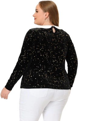 - The retro peter pan collar enhance the look and fit of this plus size vevet blouse, styled with shiny star pattern and velvet fabric