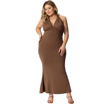 - This dress features a regular cut, paired with an elegant pure brown and casually tied shoulder straps