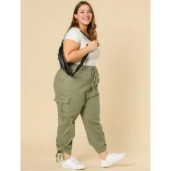 Agnes Orinda Women’s Plus Size Cargo Elastic Waist Athleisure Ankle Length Satin Joggers Pant