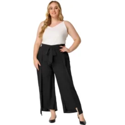 Agnes Orinda Women’s Plus Size Split Wide Leg Tie Knot High Rise Palazzo Formal Outfits Pants