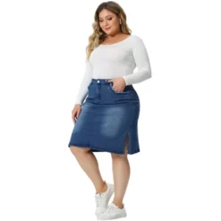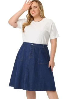 Agnes Orinda Women’s Plus Size Denim Casual A-line Jean Buttons Decor Faux Pockets Mini Skirts