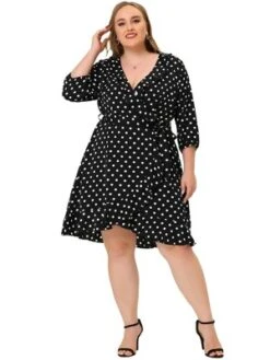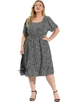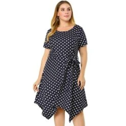 Agnes Orinda Women’s Plus Size Short Sleeve Lace Insert High Low Belt A-Line Boho Midi Dress