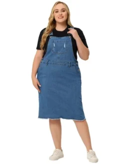 Agnes Orinda Women’s Plus Size Overall Dress Button Adjustable Strap Denim Suspender Dresses