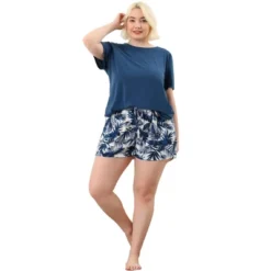 Agnes Orinda Women’s Plus Size T Shirts Round Neck Geometry Printed Pullover Tops