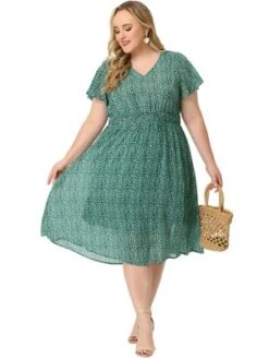 Agnes Orinda Women’s Plus Size V Neck 3/4 Sleeve Casual Swing Loose A-Line Dresses