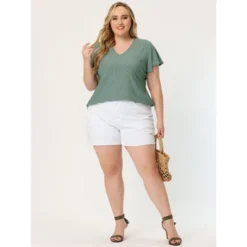 Agnes Orinda Women’s Plus Size V Neck Long Sleeve Twist Knot Top