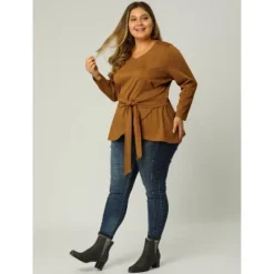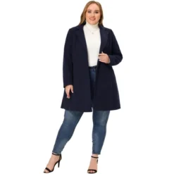 Agnes Orinda Women’s Plus Size Work Tie Waist Notched Lapel Long Coat