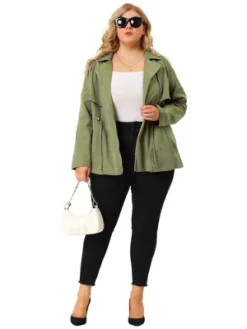 Agnes Orinda Women’s Plus Size Zipper Drawstring Boyfriend Jacket