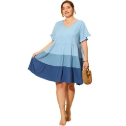 Agnes Orinda Women’s Plus Size Babydoll Ruffle Flowy Swing Chambray Outfits Fashion Midi Dress