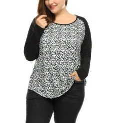 Agnes Orinda Women’s Plus Size Winter Floral Print Raglan Long Sleeve Tunic Blouses