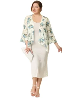 Agnes Orinda Women’s Plus Size Elegant Open Front 3/4 Sleeve Lace Lightweight Tunic Cardigans