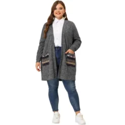 Agnes Orinda Women’s Plus Size Long Sleeve Open Front Knit Crop Lightweight Cardigan Sweater