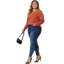 Agnes Orinda Women’s Plus Size Long Sleeve V Neck Button Front Casual T-shirt